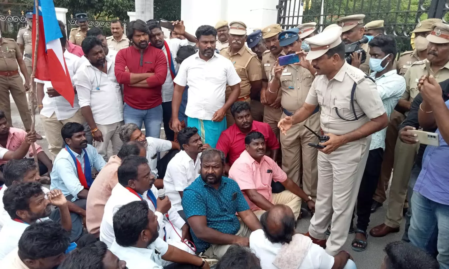 இந்த முற்றுகை போராட்டம் குறித்து தகவல் கிடைத்ததும், கூடுதல் துணை கமிஷனர் ரவிச்சந்திரன், சூரமங்கலம் உதவி கமிஷனர் நாகராஜன், இன்ஸ்பெக்டர்கள் கருப்பூர் தமிழரசி, சூரமங்கலம் சிவக்குமார், கருப்பூர் சப்-இன்ஸ்பெக்டர் ராஜா மற்றும் போலீசார் அங்கு வந்து விடுதலை சிறுத்தைகள் கட்சியினரிடம் பேச்சுவார்த்தை நடத்தினர். போலீசாரின் உறுதிமொழியை ஏற்று அந்த கட்சியினர் போராட்டத்தை கைவிட்டு அங்கிருந்து கலைந்து சென்றனர்.