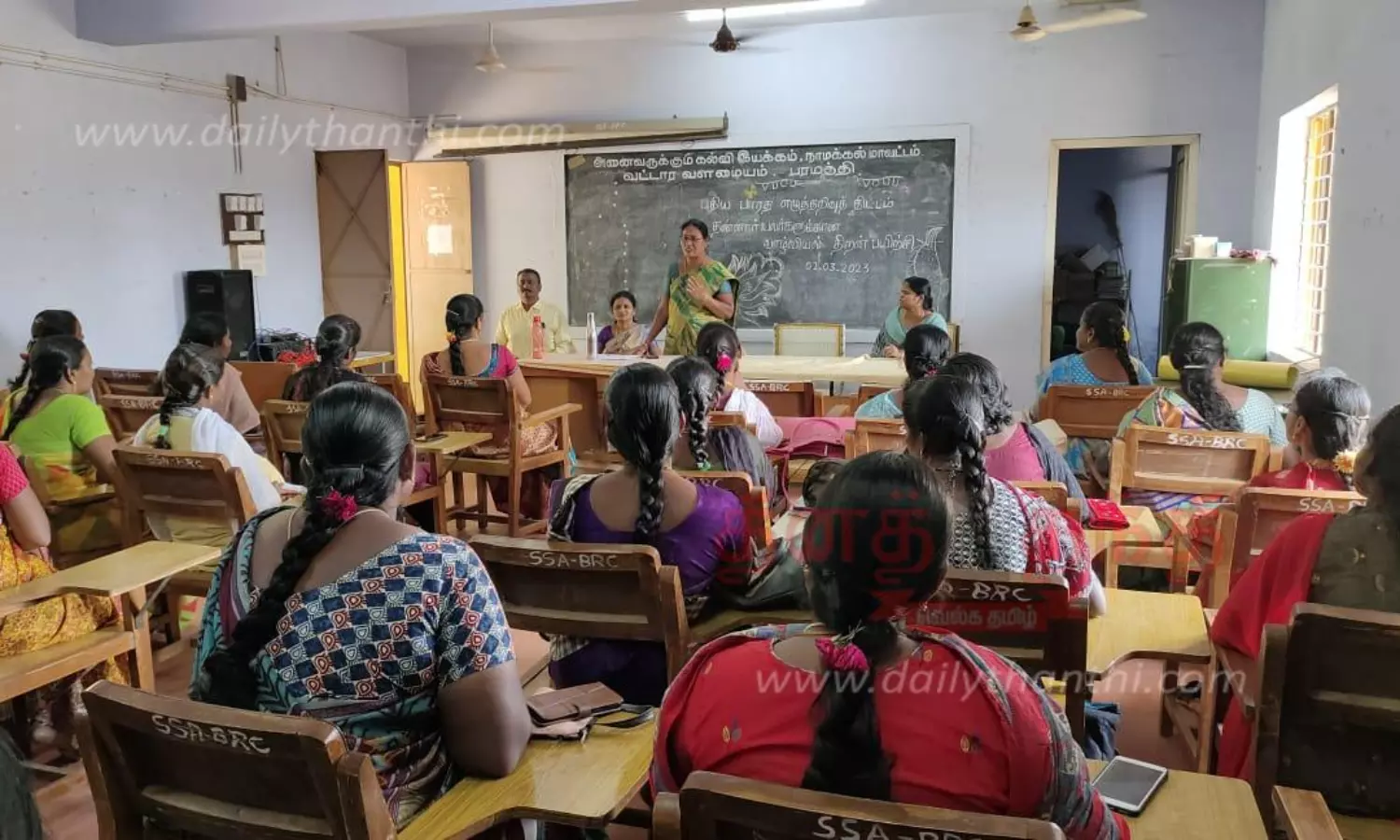 பரமத்திவேலூர் அருகே உள்ள பரமத்தி ஒருங்கிணைந்த பள்ளி கல்வி வட்டார வள மையம் சார்பில் புதிய பாரத எழுத்தறிவு திட்டத்தின் கீழ் தன்னார்வலர்களுக்கான பயிற்சி பரமத்தி வட்டார வள மையத்தில் நடைபெற்றது. பரமத்தி வட்டார வள மையத்திற்குட்பட்ட குடியிருப்புகளில் முற்றிலும் எழுத படிக்க தெரியாதவர்களுக்கு அடிப்படை கல்வியை கற்பிக்க பள்ளி சாரா மற்றும் வயது வந்தோர் கல்வி இயக்கம் சார்பில் புதிய பாரத எழுத்தறிவு திட்டம் செயல்பட்டு வருகிறது. இம் மையங்களில் ஆசிரியராக பணிபுரியும் தன்னார்வலர்களுக்கு வாழ்வியல் திறன் சார்ந்த பயிற்சி நடைபெற்றது. பயிற்சியை பரமத்தி வட்டார வளமைய மேற்பார்வையாளர் சுபா தொடங்கி வைத்தார். இதில் டாக்டர் சியாமிளா கவுரி, வக்கீல் செல்வமணி ஆகியோர் சட்டம் சார்ந்த கல்வி அறிவு, உடல் நலம் மற்றும் சுகாதாரம் திறன் மேம்பாடு, சுய உதவிக் குழு போன்ற துறை சார்ந்த வல்லுனர்களை கொண்டு பயிற்சியளித்தனர். பயிற்சியில் 40-க்கும் மேற்பட்ட தன்னார்வலர்கள் கலந்து கொண்டனர். பயிற்சிக்கான ஏற்பாடுகளை ஆசிரிய பயிற்றுநர்கள் அனிதாகுமாரி, ராஜா, பார்வதி மற்றும் செல்வராணி ஆகியோர் செய்திருந்தனர்.