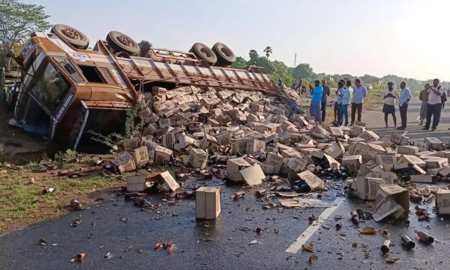 25 ஆயிரம் பீர் பாட்டில்களுடன் சென்ற லாரி கவிழ்ந்தது