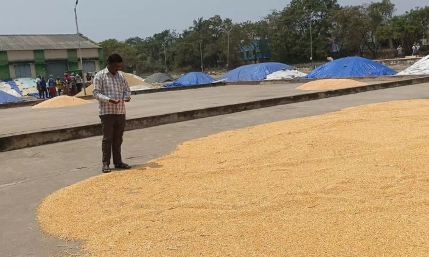 தாராபுரம், அலங்கியம், தளவாண்பட்டிணம், சந்திராபுரம், கொங்கூர் பகுதிகளில் மக்காச்சோளம் சாகுபடி செய்யப்பட்டு தற்போது அறுவடை நடக்கிறது. மக்காச்சோளத்தை அறுவடை செய்த விவசாயிகள் அவற்றை காய வைத்து விற்பனை செய்கிறார்கள்.