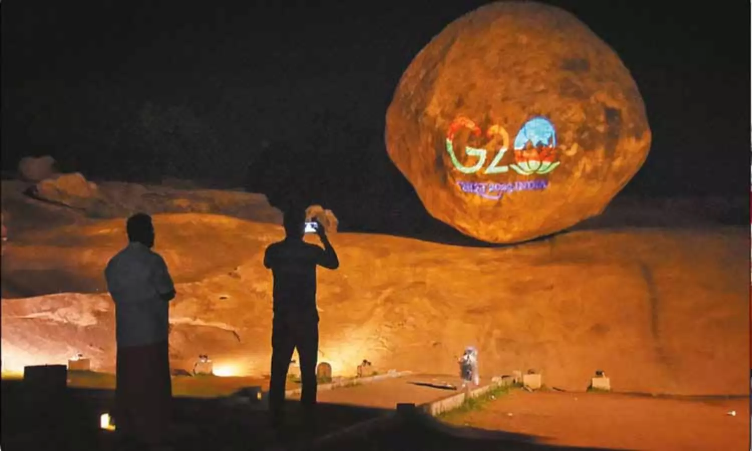 அந்த வகையில் செங்கல்பட்டு மாவட்டம் மாமல்லபுரத்தில் உள்ள வெண்ணை உருண்டை கல் புராதன சின்னத்தில் ஜி20 லேசர் ஒளி வெள்ளம் ஒளிரூட்டப்பட்டதில் மிளிர்கிறது.