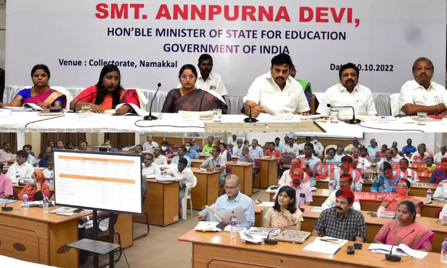 இக்கூட்டத்தில் மத்திய கல்வித்துறை இணை மந்திரியின் தனி செயலாளர் ரோகிணி, மாவட்ட வருவாய் அலுவலர் (பொறுப்பு) மல்லிகா, ஒருங்கிணைந்த பள்ளிக்கல்வி இயக்குனர் நாகராஜமுருகன், தர்மபுரி மண்டல கல்லூரி கல்வி இணை இயக்குனர் ராமலட்சுமி, நாமக்கல் உதவி கலெக்டர் மஞ்சுளா, முதன்மை கல்வி அலுவலர் மகேஸ்வரி, மாவட்ட ஊரக வளர்ச்சி முகமை திட்ட இயக்குனர் வடிவேல் உட்பட அரசுத்துறை அலுவலர்கள் கலந்து கொண்டனர்.