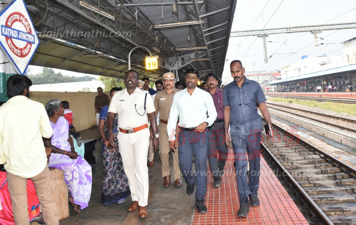 காட்பாடி முழுவதும் முதல் வருகை முன்னிட்டு பலத்த போலீஸ் பாதுகாப்பு போடப்பட்டுள்ளது.