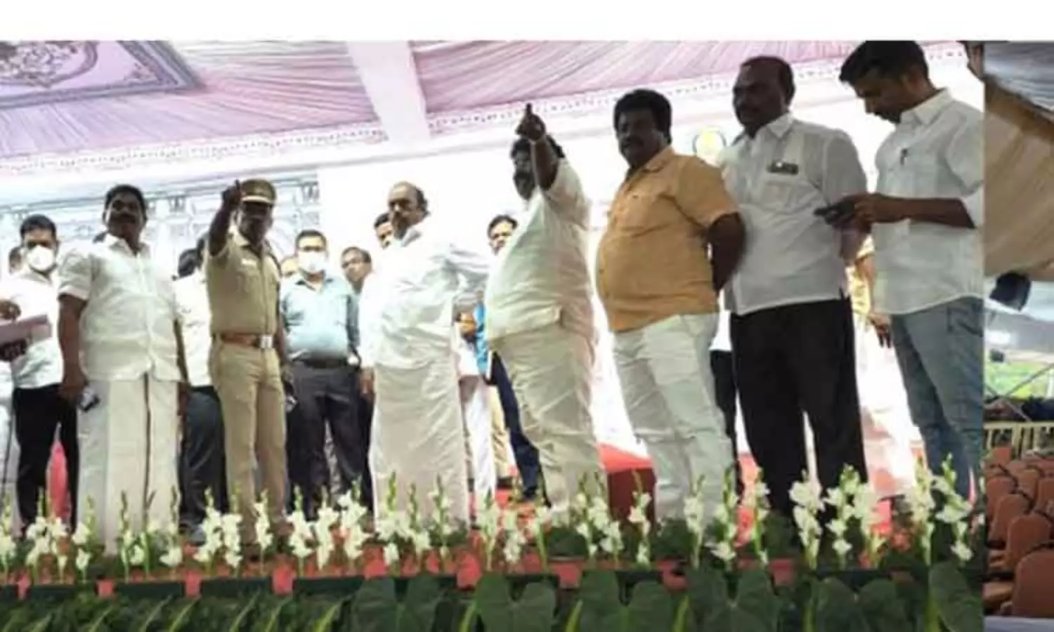 இதையொட்டி இன்று மாலை அமைச்சர் எ.வ.வேலு விழா நடக்கும் மைதானத்திற்கு வந்து விழா ஏற்பாடுகளை பார்வையிட்டு அதிகாரிகளுக்கு ஆலோசனை வழங்கினார்.