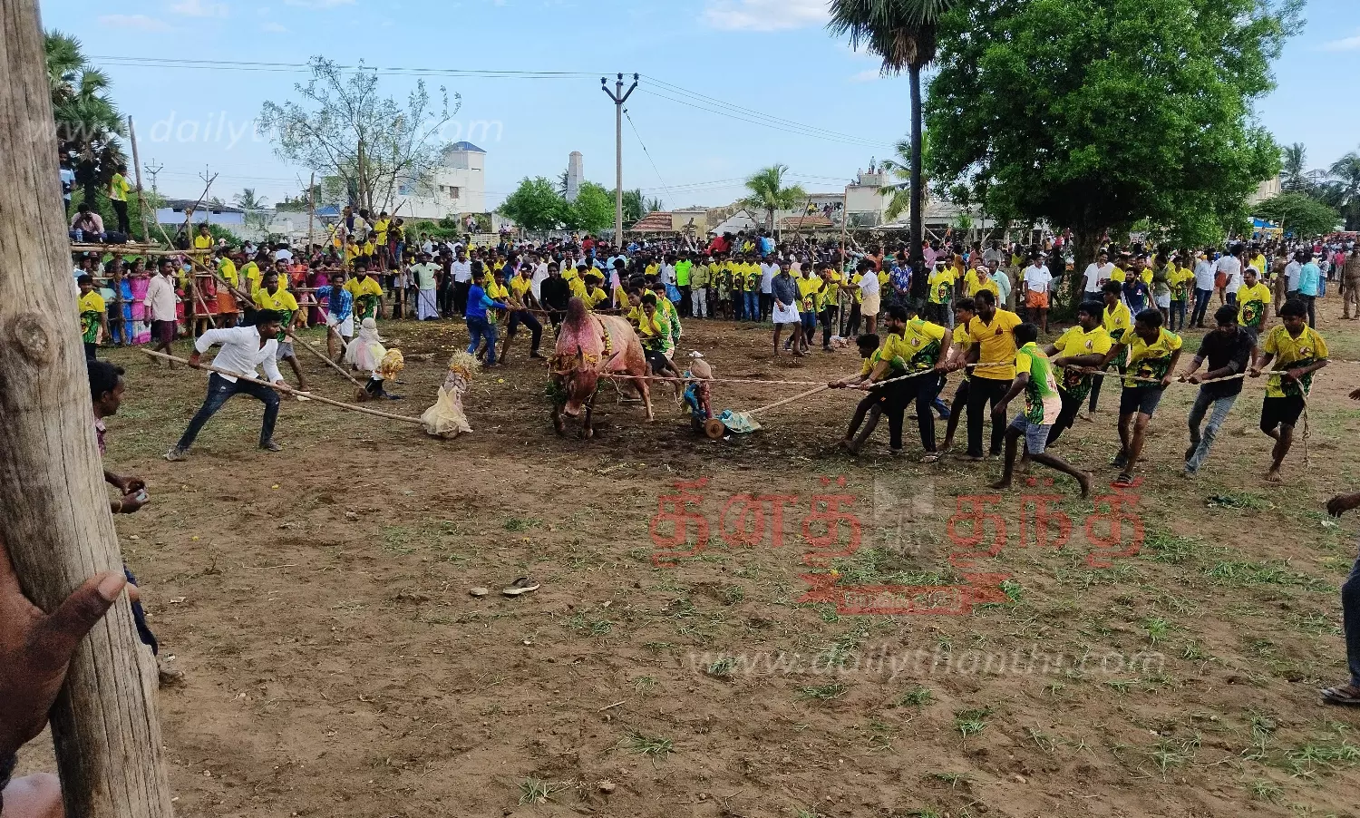 இதனை தொடர்ந்து கோவிலின் முன்பு அமைக்கப்பட்ட திடலில் எருதாட்டம் நடந்தது. இதில் அப்பகுதியை சேர்ந்த வாலிபர்கள் உற்சாகத்துடன் எருதுகளை பிடித்தனர்.