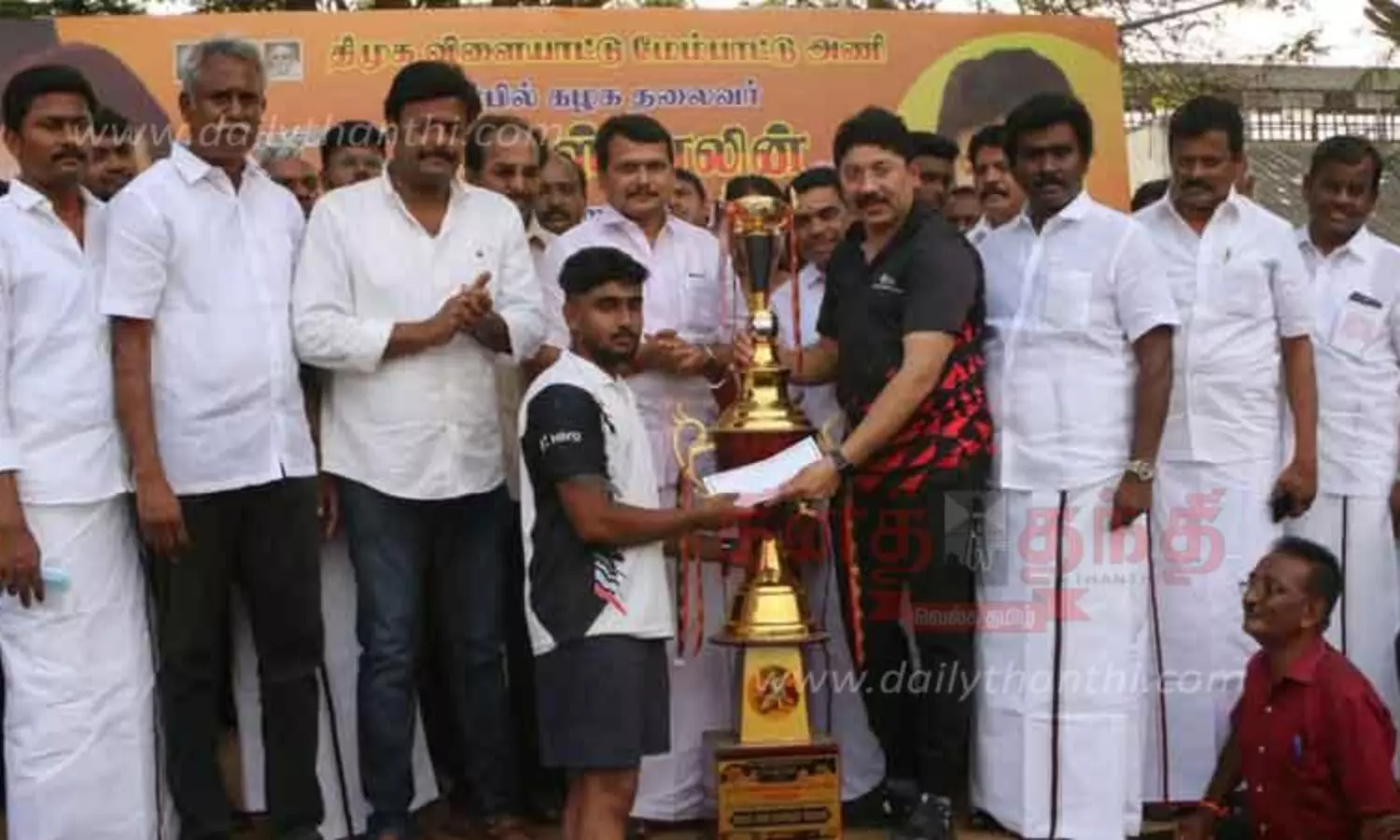 அமைச்சர் செந்தில் பாலாஜி முன்னிலை வகித்தார். தி.மு.க. விளையாட்டு மேம்பாட்டு அணியின் மாநில செயலாளர் தயாநிதி மாறன் எம்.பி. கலந்து கொண்டு வெற்றி பெற்ற வீரர்களுக்கு பரிசு கோப்பை வழங்கினார்.