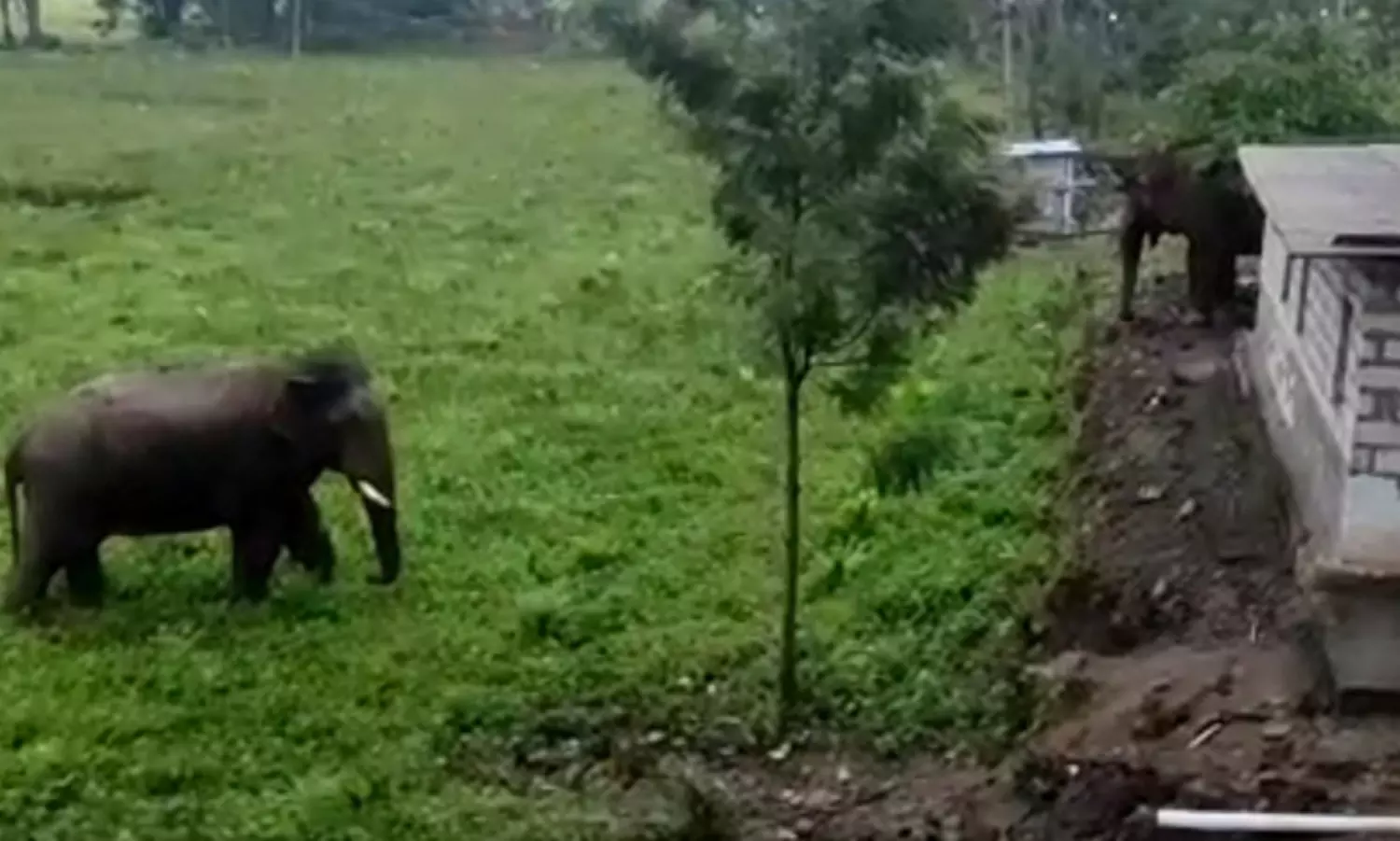 தோட்டத்தில் சுற்றி திரிந்த 2 யானைகள்;