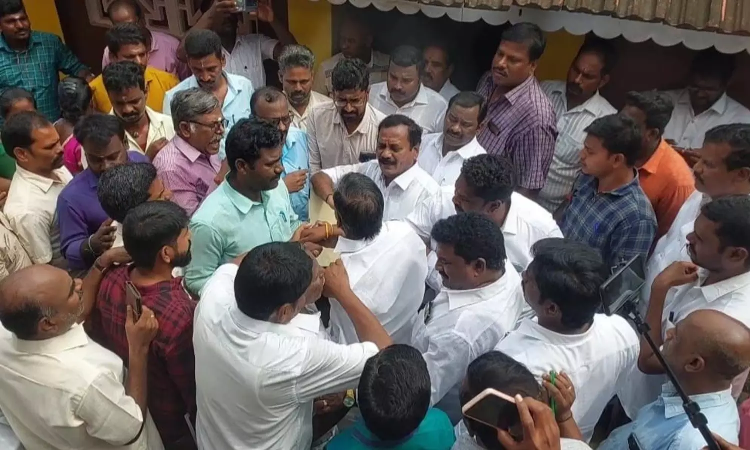 திண்டிவனம் பகுதியில் பழமை வாய்ந்த ஸ்ரீ மரகதாம்பிகை உடனுறை ஸ்ரீதிந்திரீணீஸ்வரர் கோவிலுக்கு சொந்தமான பூந்தோட்டம் பகுதியில் உள்ள இடத்தை ஆக்கிரமித்து வீடுகள் கட்டி சுமார் 20 ஆண்டுகளாக 38 குடும்பத்தினர் தரை வாடகை செலுத்தி வசித்து வருகிறார்கள். இதில் 14 குடும்பத்தினர் தரை வாடகை செலுத்தாததால் கோர்ட்டு உத்தரவின் பேரில் அவர்களின் வீடுகளை அகற்றுவதற்காக இந்து சமய அறநிலையத்துறை அதிகாரிகள் நேற்று அங்கு வந்தனர். அவர்களை திண்டிவனம் தொகுதி எம்.எல்.ஏ. அர்சுனன் தலைமையில் அ.தி.மு.க.வினர் தடுத்து நிறத்தி அறநிலையத்துறைக்குசொந்தமான இடம் என்பதற்கான ஆவணத்தை காட்டும்படி அதிகாரிகளுடன் வாக்குவாதம் செய்தனர்.