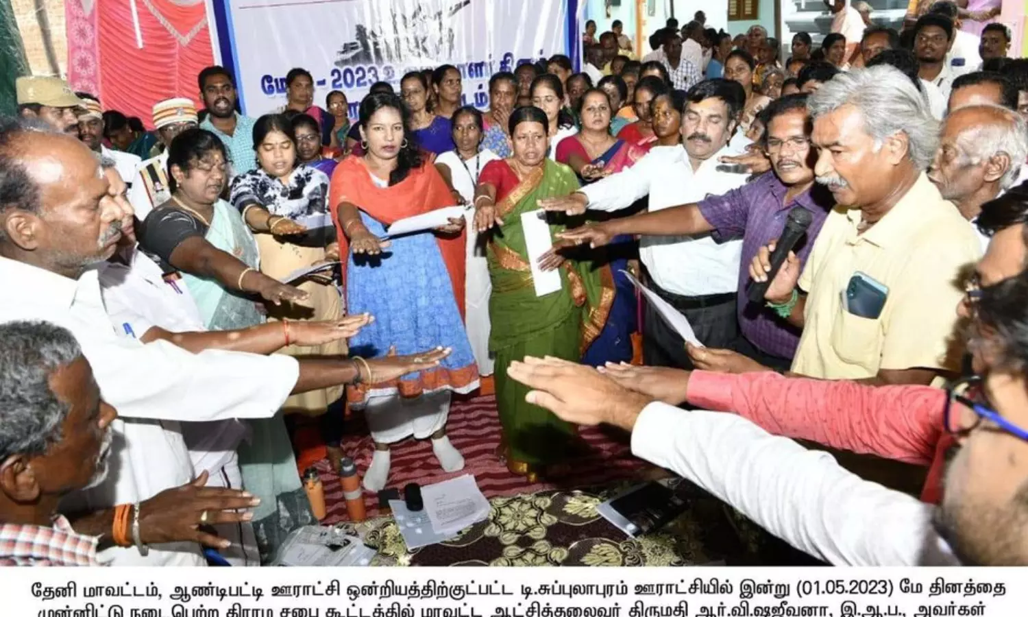 மே தினத்தையொட்டி, தேனி மாவட்டத்தில் உள்ள 130 கிராம ஊராட்சிகளில் கிராமசபை கூட்டம் நடந்தது.;