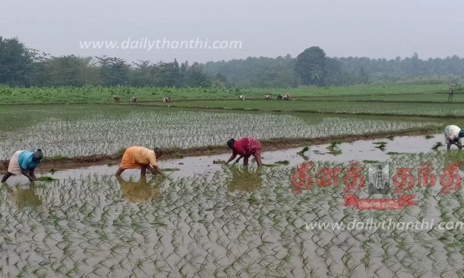 கம்பத்தில் 2-ம் போக சாகுபடிக்கு நெல் நடவு பணி தீவிரம்