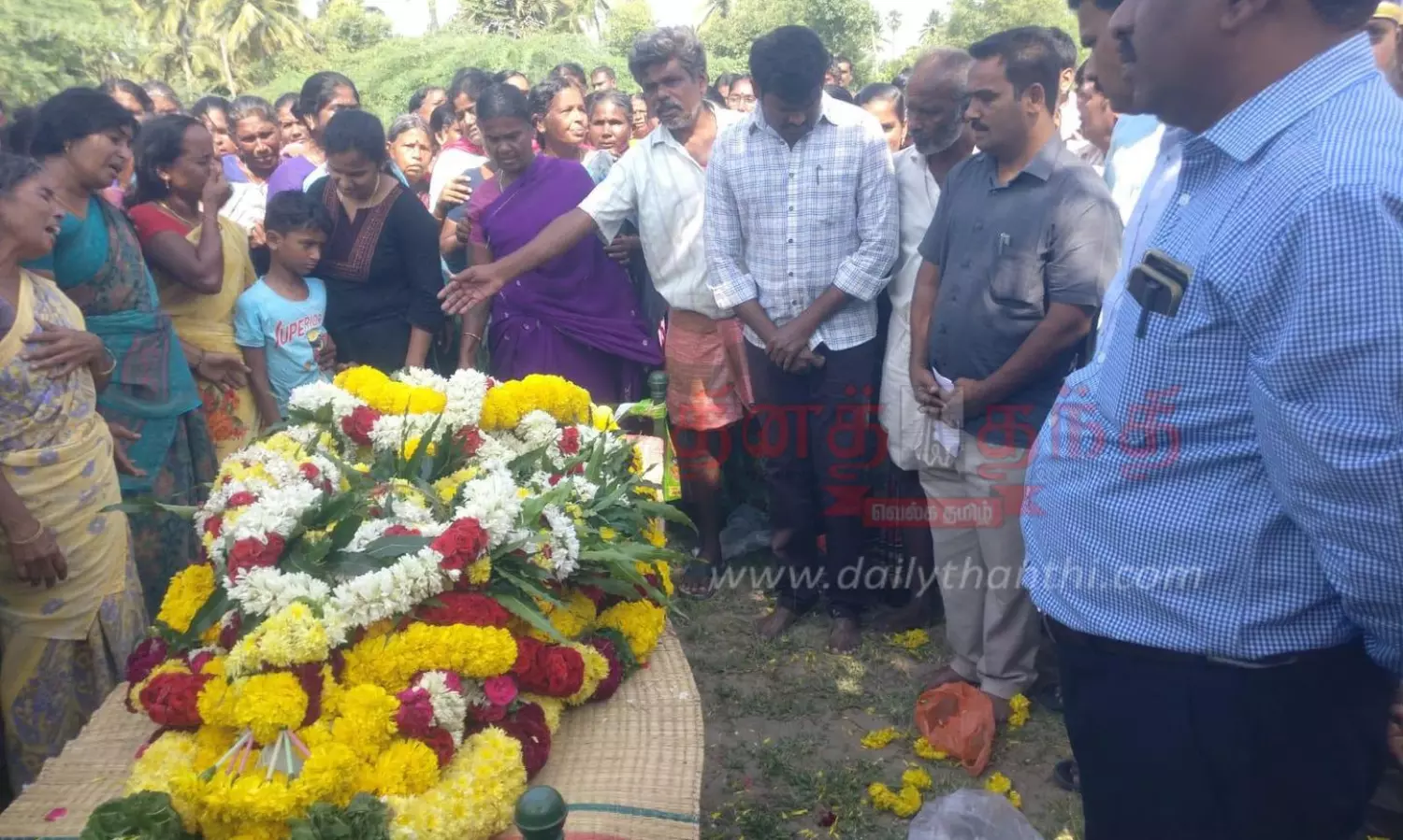 இதனை தொடர்ந்து கோவிந்தராஜ் உடலுக்கு கிருஷ்ணகிரி மாவட்ட வருவாய் அலுவலர் சாதனைக்குறள் மலர்வளையம் வைத்து மரியாதை செலுத்தி உறவினர்களுக்கு ஆறுதல் கூறினார். அப்போது கிருஷ்ணகிரி உதவி கலெக்டர் பாபு, போச்சம்பள்ளி தாசில்தார் மோகன் மற்றும் துறை சார்ந்த அலுவலர்கள், பொதுமக்கள் கலந்து கொண்டனர்.