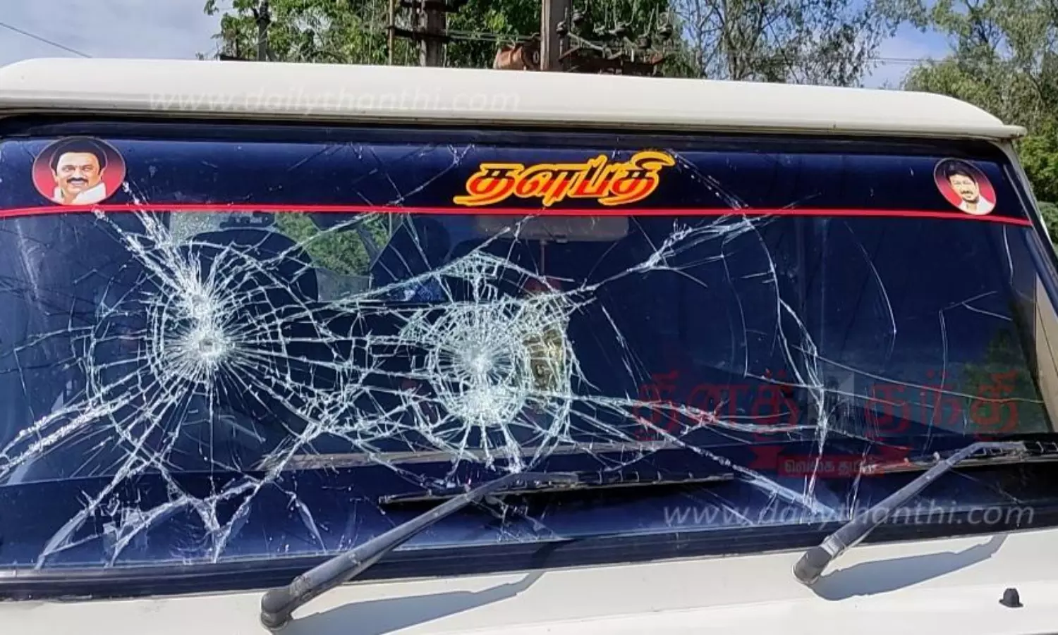 தி.மு.க.வை சேர்ந்த ஊராட்சி தலைவரின்கார் கண்ணாடிகள் உடைப்பு