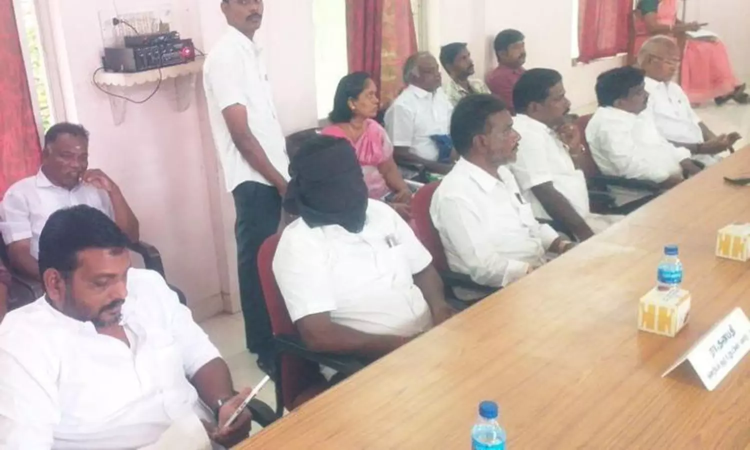 பண்ருட்டி ஒன்றியக்குழு கூட்டம் அதன் தலைவர் சபா. பாலமுருகன் தலைமையில் நடைபெற்றது. இதில் துணைத்தலைவர் தேவகி ஆடலரசு, வட்டார வளர்ச்சி அலுவலர்கள் சங்கர், சக்தி ஆகியோர் முன்னிலை வகித்தனர். கூட்டத்தில் மேலாளர் ஜெயசீலன், பொறியாளர், அலுவலர்கள், ஒன்றிய கவுன்சிலர்கள் கலந்து கொண்டனர். கூட்டத்தில் 11-வது வார்டு சுயேச்சை கவுன்சிலர் மேலிருப்பு தனபதி கருப்பு முகமூடி அணிந்து கலந்து கொண்டார். இதுகுறித்து அவர் கூறுகையில், எனது வார்டு பகுதியில் உள்ள மக்கள் குறைபாடுகளை தீர்க்க அரசு அதிகாரிகளிடம் பலமுறை மனு கொடுத்தும் எவ்வித நடவடிக்கையும் எடுக்கவில்லை, எனது வார்டு பகுதியில் அடிப்படை வசதிகள் செய்து தரவில்லை. இதற்கு எதிர்ப்பு தெரிவித்து கூட்டத்தில் கருப்பு முகமூடி அணிந்து கலந்து கொண்டேன் என்று தெரிவித்தார். இதனால் அப்பகுதியில் சிறிது நேரம் பரபரப்பு ஏற்பட்டது.