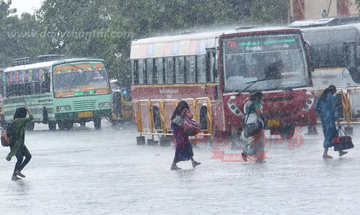 மதுரையில் மழையில் நனைந்த பயணிகள்