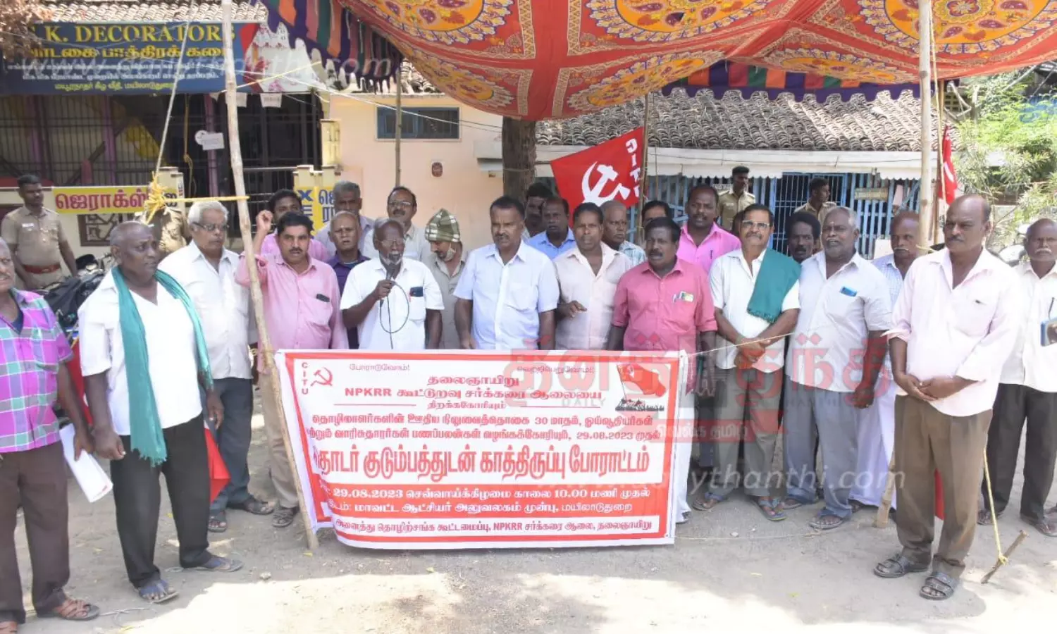 மயிலாடுதுறையில் கூட்டுறவு சர்க்கரை ஆலையை மீண்டும் திறக்கக்கோரி காத்திருப்பு போராட்டம்;