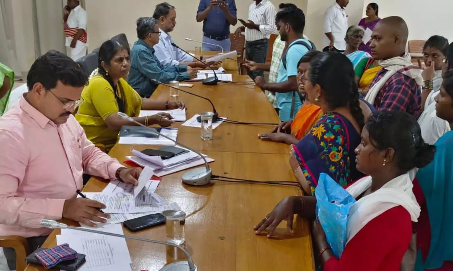 ராணிப்பேட்டை மாவட்ட கலெக்டர் அலுவலக கூட்ட அரங்கில் மக்கள் குறைதீர்வு நாள் கூட்டம் நடந்தது. கலெக்டர் வளர்மதி தலைமை தாங்கி, பொதுமக்கள் மற்றும் மாற்றுத்திறனாளிகளிடம் இருந்து கோரிக்கை மனுக்களை பெற்றுக் கொண்டு குறைகளை கேட்டறிந்தார்.