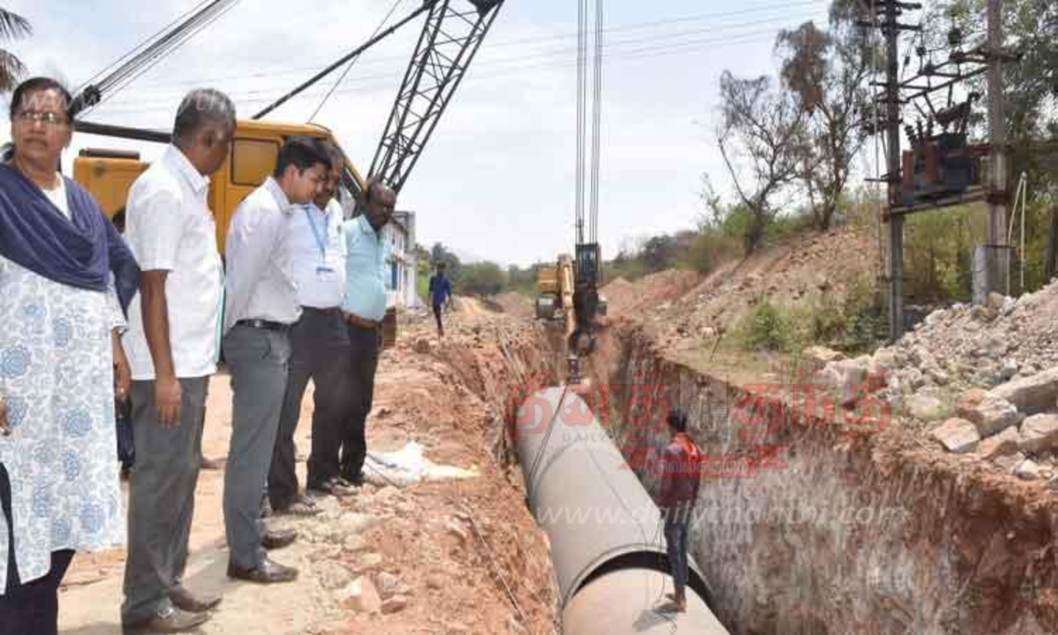 இந்த திட்டத்தில் குழாய் பதித்தல் உள்ளிட்ட பணிக ளை கலெக்டர் கிராந்திகுமார் பார்வையிட்டு ஆய்வு செய்தார்.