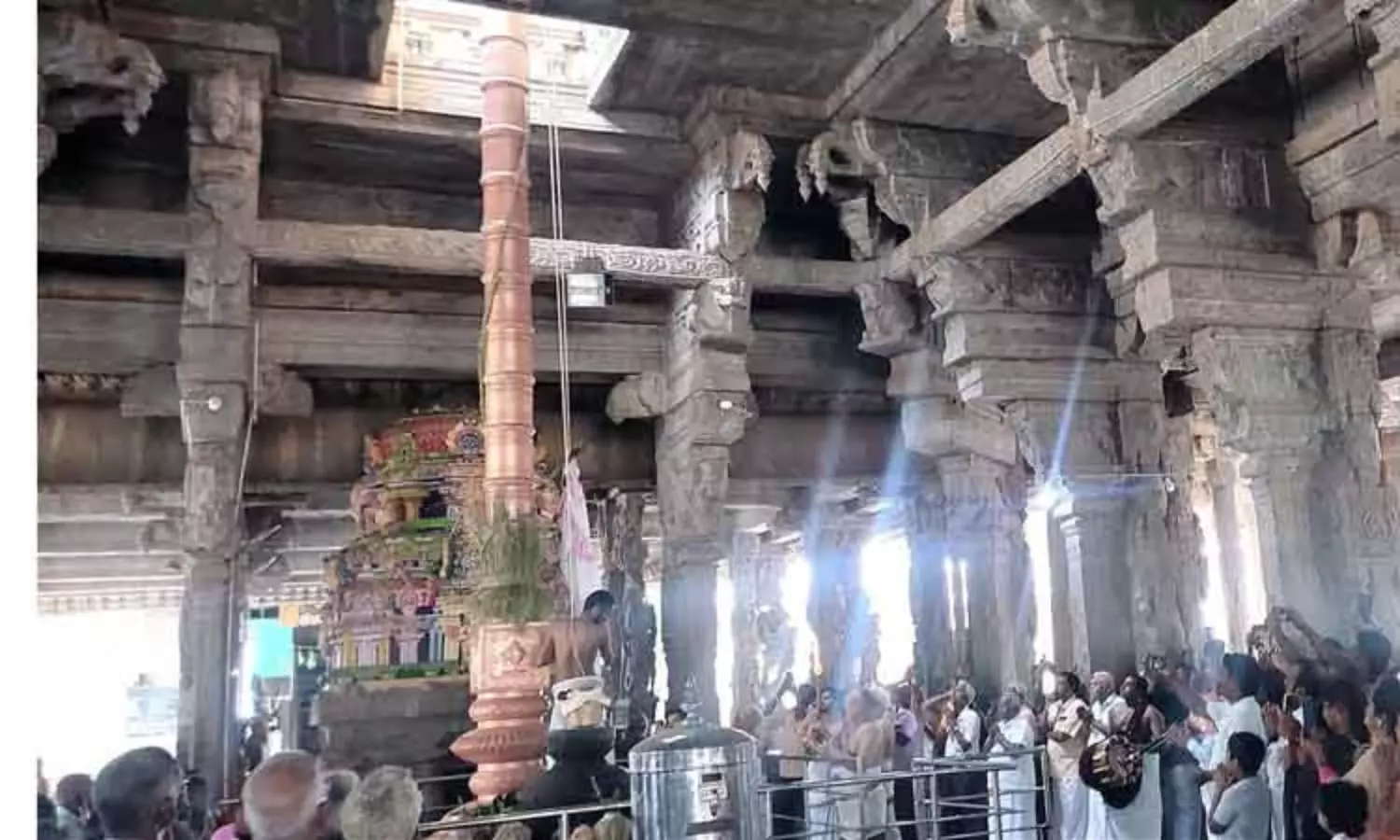 ஸ்ரீமுஷ்ணம் பூவராகசுவாமி கோவில் தேர் திருவிழா கொடியேற்றத்துடன் நேற்று தொடங்கியது.;