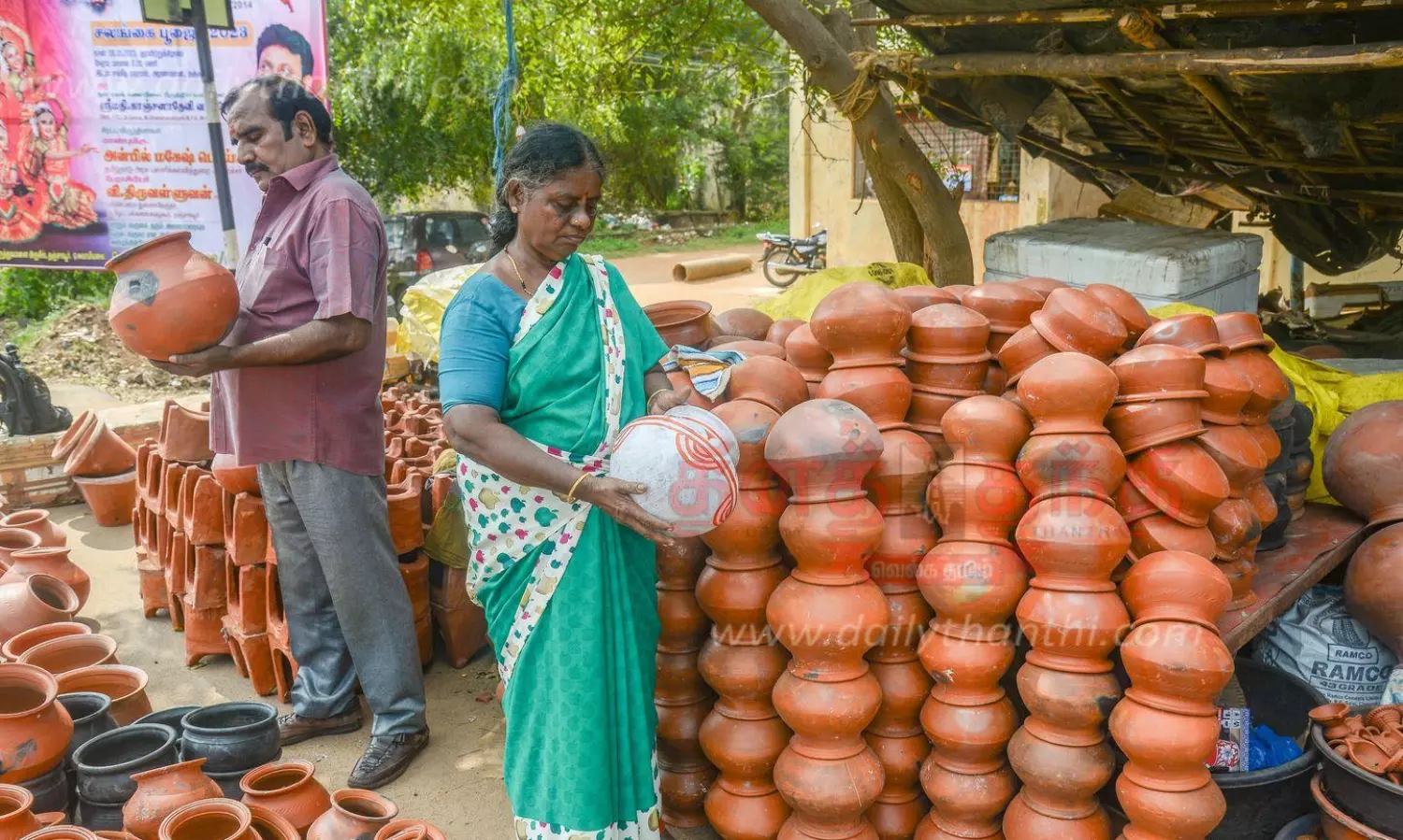 பொங்கல் பண்டிகையை முன்னிட்டு தஞ்சையில் மண்பானை விற்பனை மும்முரமாக நடைபெற்று வருகிறது. மண்பானைகள் ரூ.150 முதல் ரூ.1,000 வரையிலான விலைகளில் கிடைக்கிறது.