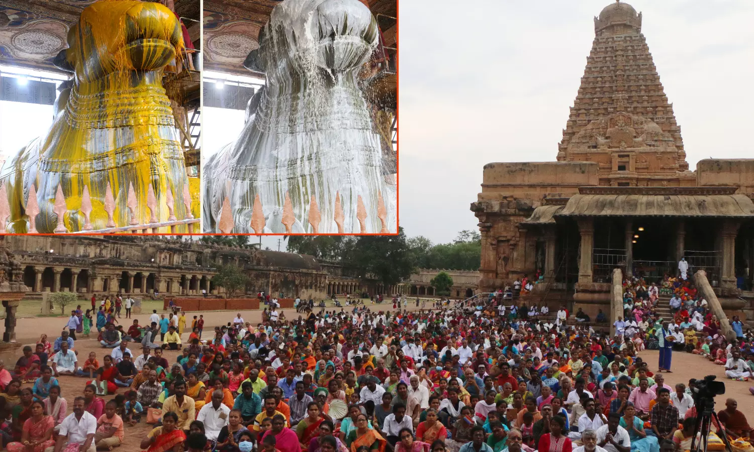 பிரதோஷத்தையொட்டி தஞ்சை பெரியகோவிலில் உள்ள மகா நந்திக்கு மஞ்சள், பால் அபிஷேகம் நடைபெற்றதையும், திரளான பக்தர்கள் கலந்து கொண்டு சாமி தரிசனம் செய்தனர்.பிரதோஷ வழிபாடு.