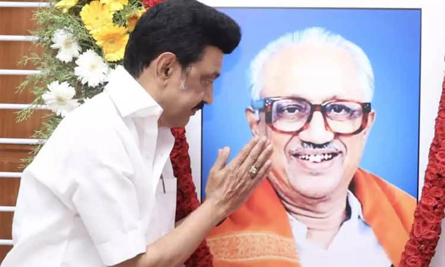 பேராசிரியர் அன்பழகனின் 3ஆம் ஆண்டு நினைவுநாளையொட்டி முதல் அமைச்சர் முக ஸ்டாலின் மரியாதை செலுத்தினார்.;