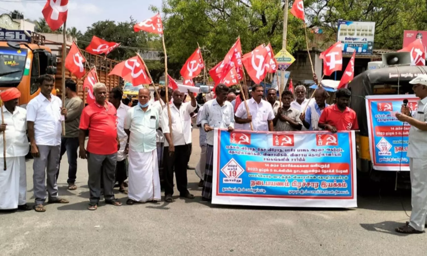 பாலக்கோடு பஸ் நிலையம் முன்பு 14 அம்ச கோரிக்கையை வலியுறுத்தி விவசாய சங்கத்தினர் வட்ட செயலாளர் முருகன் தலைமையில் நடைபயண பிரசார இயக்கம் மேற்கொண்டனர். இதில் மல்லுப்பட்டி முதல் பிக்கனஅள்ளி, சூடப்பட்டி, எண்டப்பட்டி, பாலக்கோடு பஸ் நிலையம் வரை ஊர்வலமாக சென்றனர். அப்போது நிரந்தர வேலை வாய்ப்பு, சம ஊதியம், மாதந்தோறும் பென்சன், விவசாய கடன் தள்ளுபடி, இலவச மின்சாரம் உள்ளிட்ட பல்வேறு கோரிக்கைகளை வலியுறுத்தி கோஷமிட்டனர். இந்த நிகழ்ச்சியில் மாவட்ட, வட்ட, கிளை கழக நிர்வாகிகள் மற்றும் விவசாயிகள் கலந்து கொண்டனர்.