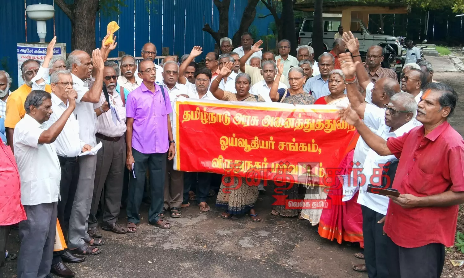 தமிழக அரசு அனைத்து துறை ஓய்வூதிய சங்கத்தின் விருதுநகர் மாவட்ட கிளை சார்பில் கலெக்டர் அலுவலகம் முன்பு ஆர்ப்பாட்டம் நடைபெற்றது. மாவட்ட துணைத்தலைவர் திருவண்ணாமலை தலைமையில் நடந்த ஆர்ப்பாட்டத்தை ஓய்வூதியர் அமைப்புகளின் தமிழ் மாநில ஒருங்கிணைப்பு குழு மாவட்ட தலைவர் சந்திரராஜன் தொடங்கி வைத்தார். மாவட்ட செயலாளர் ராமசுப்புராஜ் கோரிக்கைகளை விளக்கி பேசினார். பல்வேறு அமைப்புகளின் நிர்வாகிகள் வாழ்த்தி பேசினர். மாநில செயலாளர் ஆறுமுகம் நிறைவுரை ஆற்றினார். ஆர்ப்பாட்டத்தின் போது பழைய ஓய்வு திட்டத்தை அமல்படுத்த வேண்டும். அனைத்து ஓய்வூதியர்களுக்கும் குடும்ப ஓய்வூதியர்களுக்கும் மருத்துவ காப்பீட்டு திட்டத்தை குறைபாடு இல்லாமல் வழங்கிட வேண்டும். மத்திய அரசு வழங்கும் அதே நாளில் அனைத்து ஓய்வுதியர்களுக்கும் குடும்ப ஓய்வூதியர்களுக்கும் அகவிலைப்படி வழங்கிட வேண்டும். 20 சதவீத உயர்த்தப்பட்ட ஓய்வூதியத்தை 65 முதல் 70 வயது வரையிலான பழைய ஓய்வூதியர்களுக்கு வழங்கிட வேண்டும். குறைந்தபட்ச ஓய்வூதியமாக ரூ.12 ஆயிரம் ஆகவும் கடைசி ஓய்வூதியத்தில் 50 சதவீதம் வழங்கிட வேண்டும். நிறுத்தப்பட்ட ரெயில் பயண சலுகையை உடனடியாக வழங்கிட வேண்டும் என்பன உள்ளிட்ட கோரிக்கைகள் வலியுறுத்தப்பட்டன.