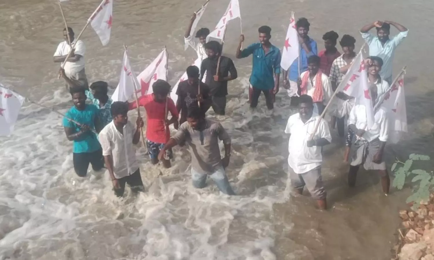 வாய்க்காலில் இறங்கி போராட்டம்