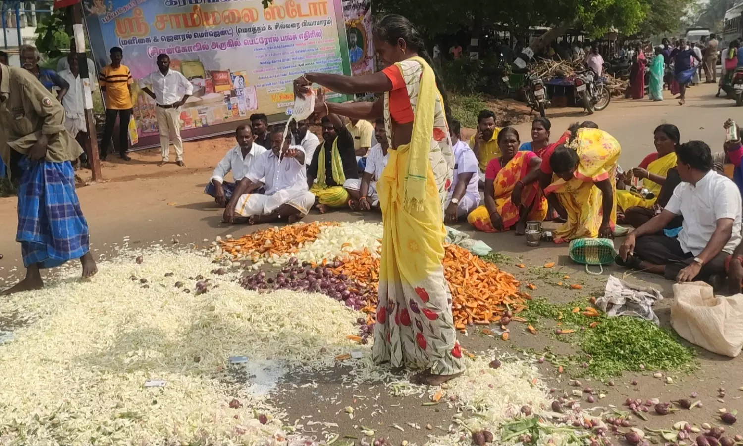 காய்கறிகளை சாலையில் கொட்டி மறியல்