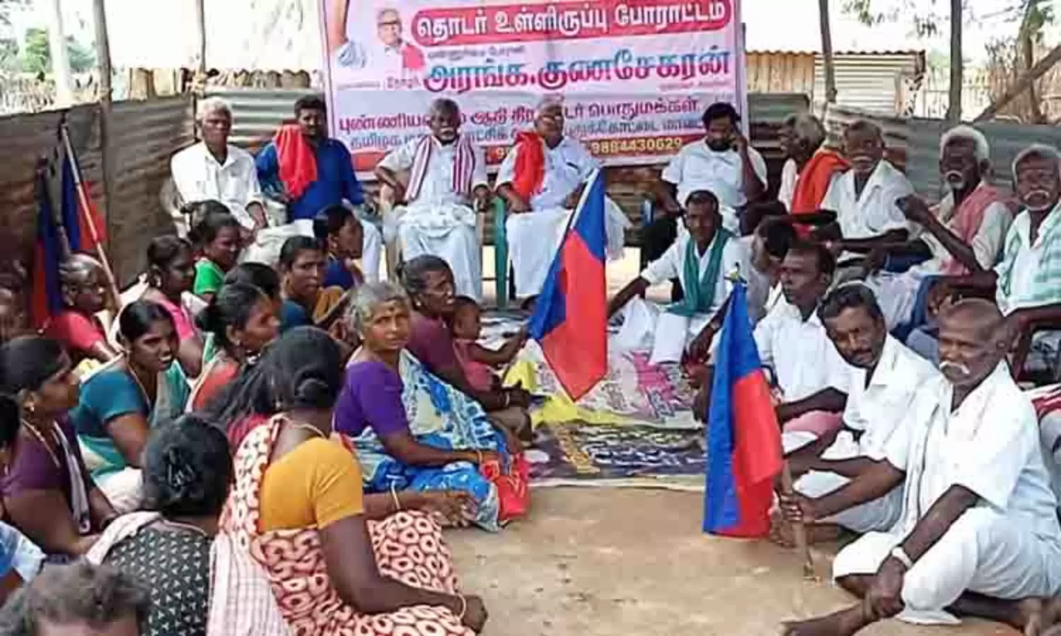 ஆவுடையார்கோவில் அருகே புண்ணியவயல் கிராமம் உள்ளது. இந்த கிராமத்தில் உள்ள ஒரு தரப்பை சேர்ந்தவர்கள் தங்களுக்கு தேவையான சாலை அமைத்து விட்டதாகவும், இதற்கு மற்றொரு பிரிவை சேர்ந்தவர்கள் தங்களுடைய இடத்தில் சாலை அமைப்பதற்கு எதிர்ப்பு தெரிவித்தனர். இதுகுறித்து அரசு அதிகாரிகளிடம் பலமுறை மனுக்கள் கொடுத்தும் எந்தவித நடவடிக்கையும் எடுக்கப்படவில்லை. இதனை கண்டித்து ஒரு தரப்பை சேர்ந்தவர்கள் அந்த கிராமத்தில் உள்ளிருப்பு போராட்டத்தில் ஈடுபட்டனர். அப்போது சாலை வசதி இல்லாததால் யாரும் இறந்தால் அவர்களை வயல்வெளியில் தூக்கிச் செல்லும் அவல நிலை ஏற்படுகிறது. மேலும் உடல்நிலை பாதித்தவர்களை மருத்துவமனைக்கு கொண்டு செல்வதற்கும் கூட முறையான வசதி இல்லாமல் உள்ளது. எனவே நிரந்தரமான சாலை அமைத்து தர வேண்டுமென அப்பகுதி மக்கள் கோரிக்கை விடுத்தனர். போராட்டத்தில் அப்பகுதி பொதுமக்கள் 50-க்கும் மேற்பட்டோர் கலந்து கொண்டனர்.