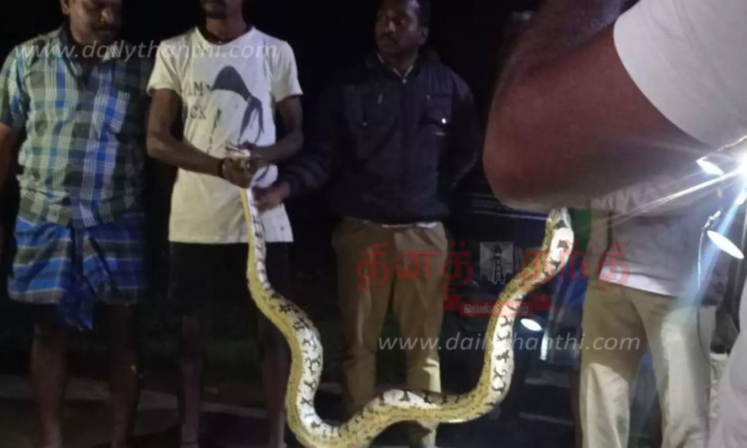 12 அடி நீள மலைப்பாம்பு பிடிபட்டது