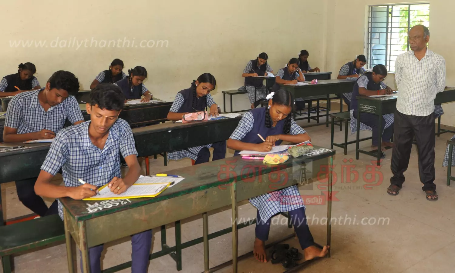 தேர்வு அறைக்கு செல்வதற்கு முன்பு வரை மாணவ- மாணவிகள் ஆர்வத்துடன் படித்து கொண்டிருந்தனர். தேர்வு எழுத தேர்வறைக்கு சென்ற மாணவ- மாணவிகளை அறை கண்காணிப்பாளரான ஆசிரியர்கள் சோதனை செய்து, உள்ளே அனுமதித்தனர். தேர்வு எழுத எழுது பொருட்கள் மட்டுமே கொண்டு செல்ல மாணவ- மாணவிகளுக்கு அனுமதி வழங்கப்பட்டது. வருகிற 19-ந் தேதி 11, 12-ம் வகுப்புகளுக்கு ஆங்கில தேர்வு நடக்கிறது. 6 முதல் 10-ம் வகுப்பு வரை பயிலும் மாணவ-மாணவிகளுக்கு 19-ந்தேதி காலாண்டு தேர்வு தொடங்குகிறது. அவர்களுக்கு முதல் நாளன்று தமிழ் தேர்வு நடக்கிறது.