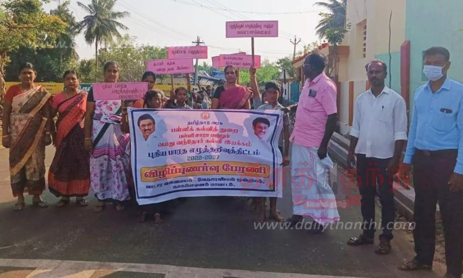 புதிய பாரத எழுத்தறிவு திட்ட விழிப்புணர்வு ஊர்வலம் நடந்தது.;