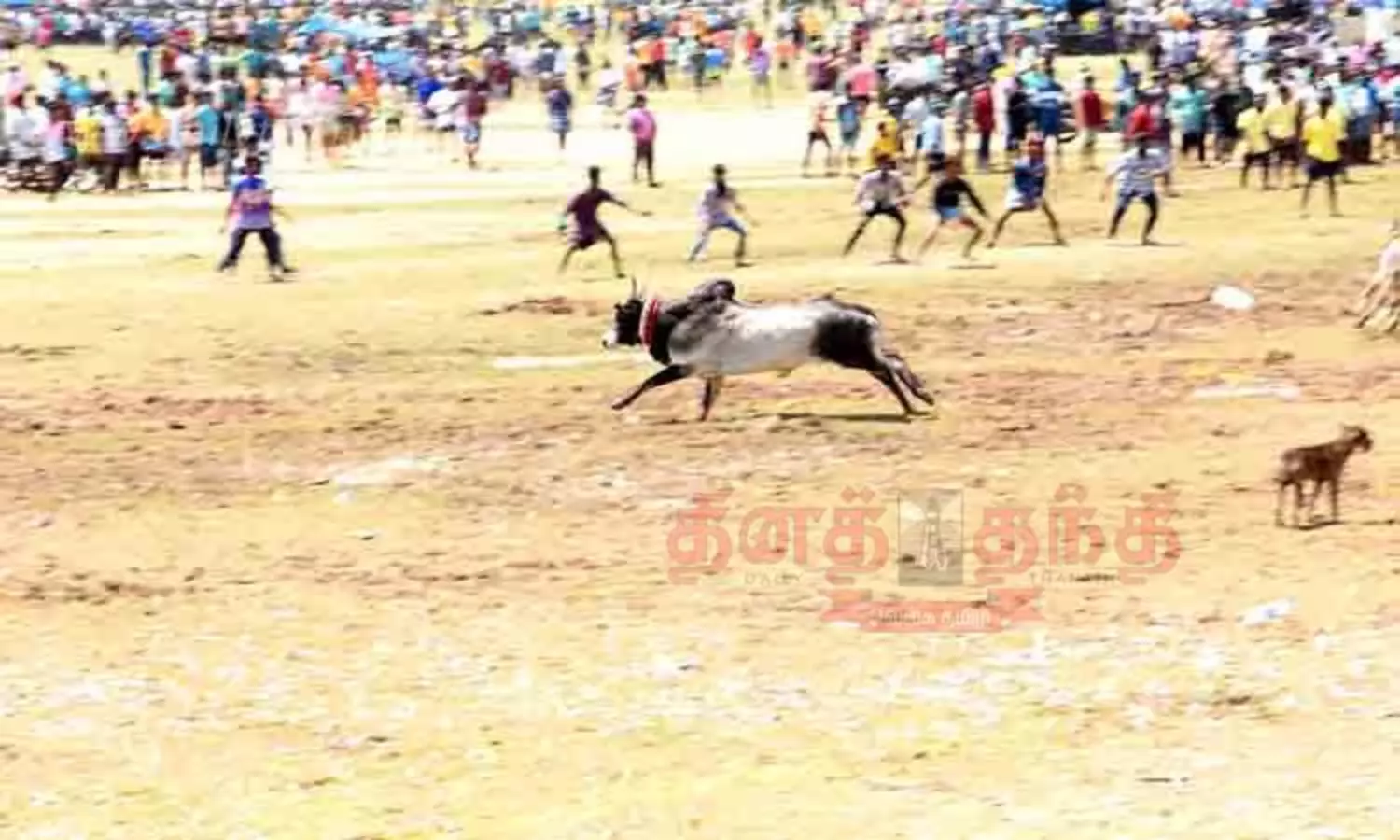 இதில் புதுக்கோட்டை, திருச்சி, திண்டுக்கல், மதுரை போன்ற சுற்றுவட்டார மாவட்டங்களில் இருந்து 300-க்கும் மேற்பட்ட காளைகள் பங்கேற்றன. அனைத்து காளைகளுக்கும் கிராம மக்கள் சார்பில் பரிசு பொருட்கள் வழங்கப்பட்டது.