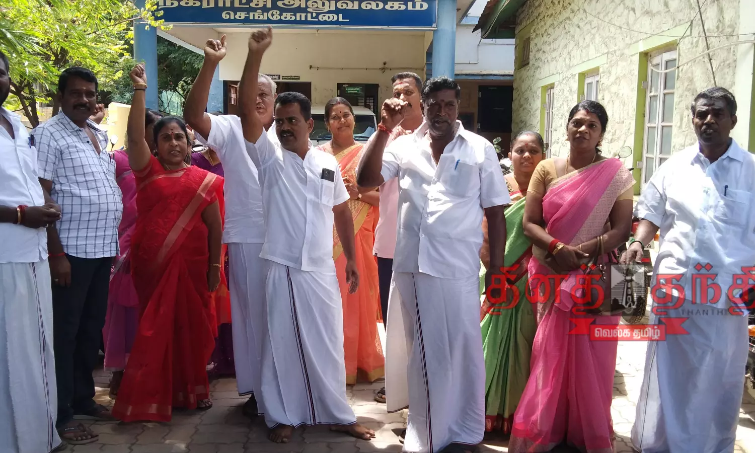 * கூட்டம் முடிந்ததும், சென்னையில் அ.தி.மு.க. இடைக்கால பொதுச் செயலாளர் எடப்பாடி பழனிசாமி கைது செய்யப்பட்டதைக் கண்டித்து, செங்கோட்டை நகராட்சி அலுவலகம் முன்பு தலைவர் ராமலட்சுமி தலைமையில் அ.தி.மு.க. கவுன்சிலர்கள் கோஷங்களை எழுப்பினர்.