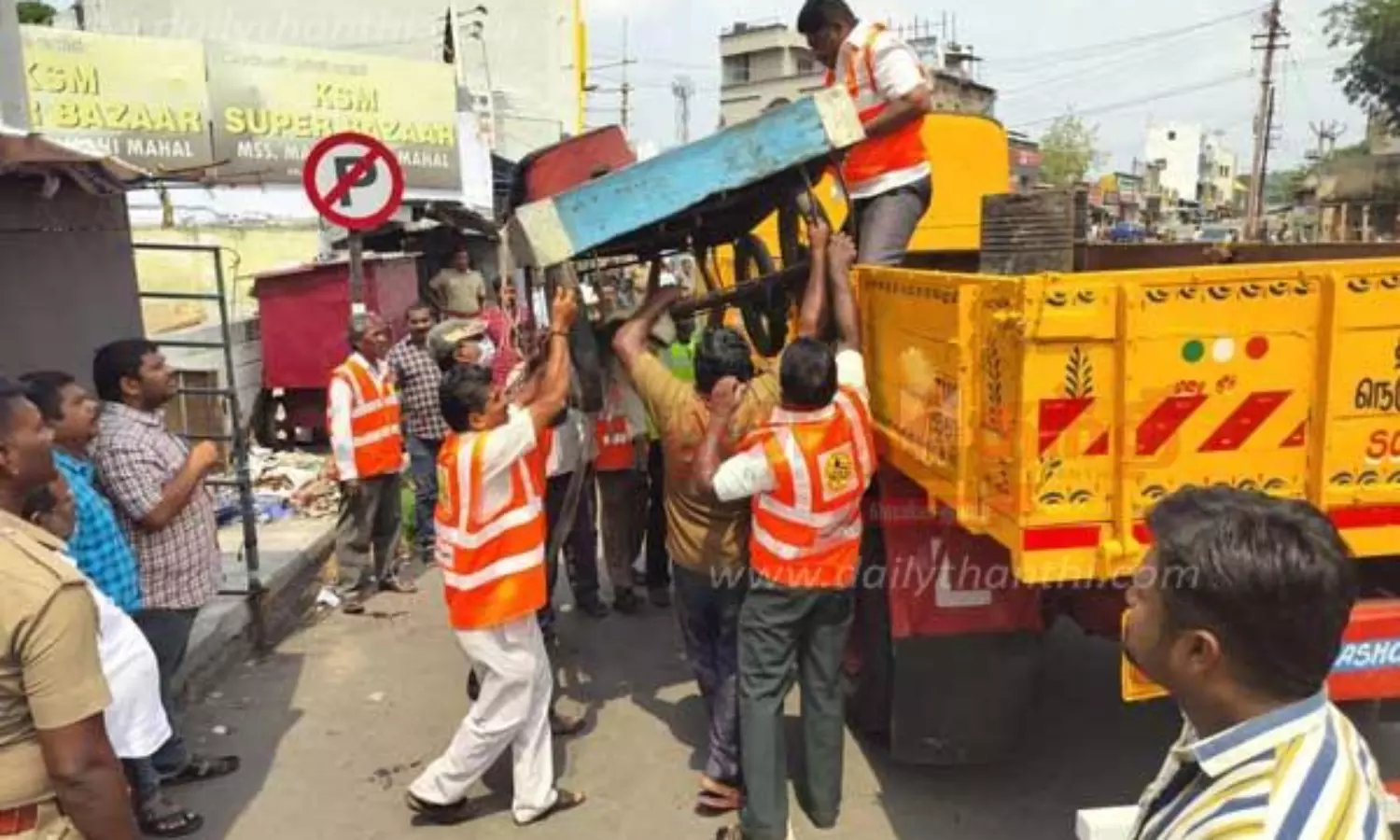 அதிகாரிகள் வருவதை அறிந்ததும் சிலர் கடைகளில் இருந்த பொருட்களையும், வண்டியையும் தாமாகவே அகற்றிக் கொண்டனர்.
