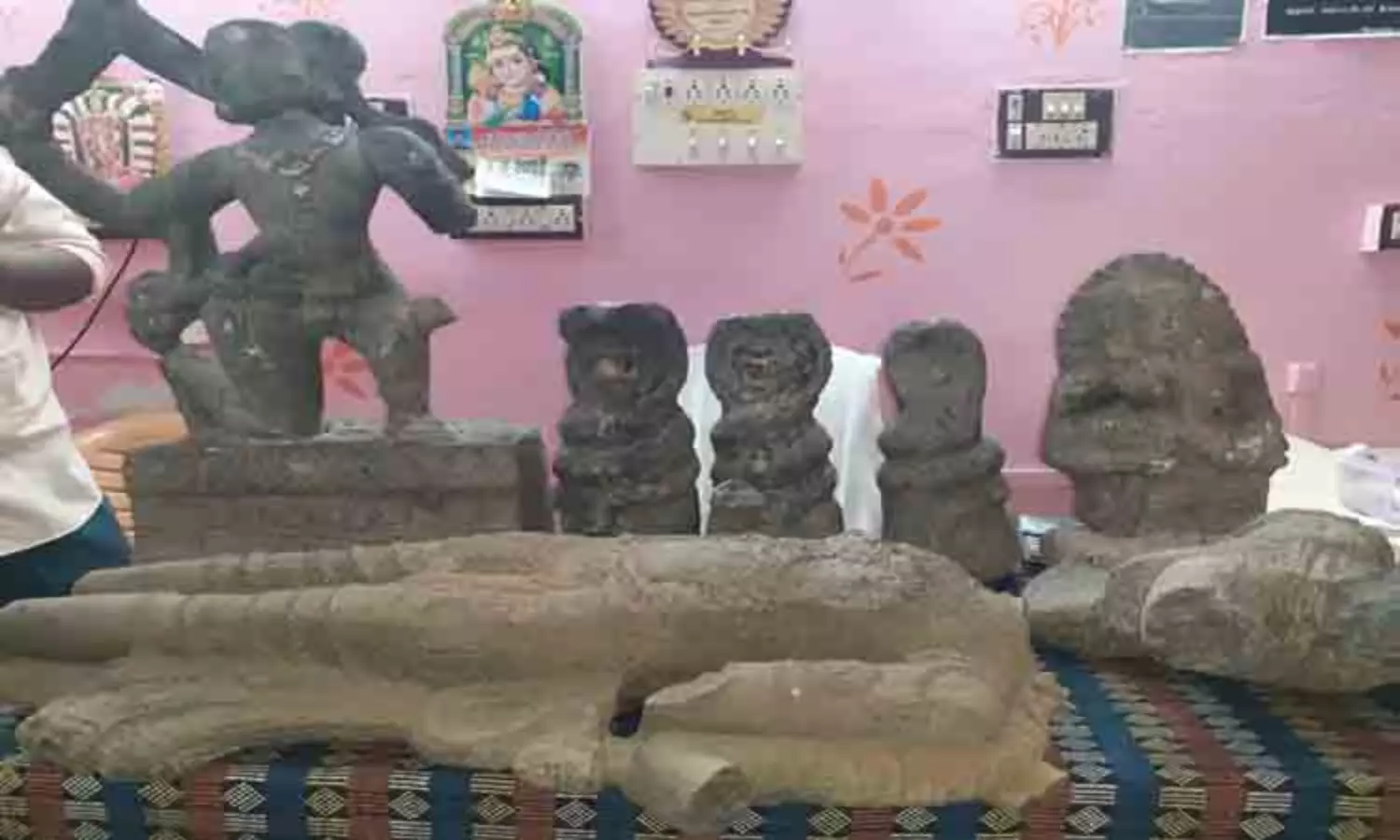 இதில் 3 அடி உயரத்தில் தலை இல்லாத அம்மன் சிலையும், கருப்பசாமி, அம்மன் சிலையும், ஒரு அடியில் 3 நாகர் சிலையும் சிதைந்த நிலையில் கண்டெடுக்கப்பட்டது. இந்த சிலைகளை திருச்சுழி தாசில்தார் சிவக்குமார் மீட்டு விருதுநகர் அரசு அருங்காட்சியகத்திற்கு அனுப்பி வைத்தார்.