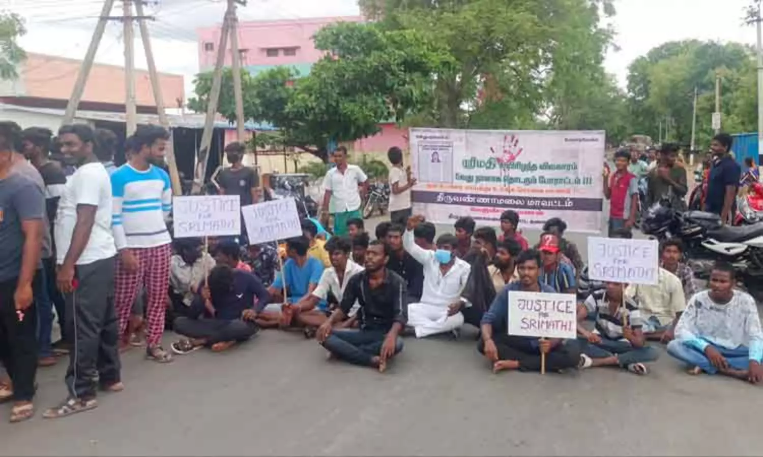 திருவண்ணாமலையில் மாணவி ஸ்ரீமதி இறப்புக்கு நீதி கேட்டு சாலை மறியல்;