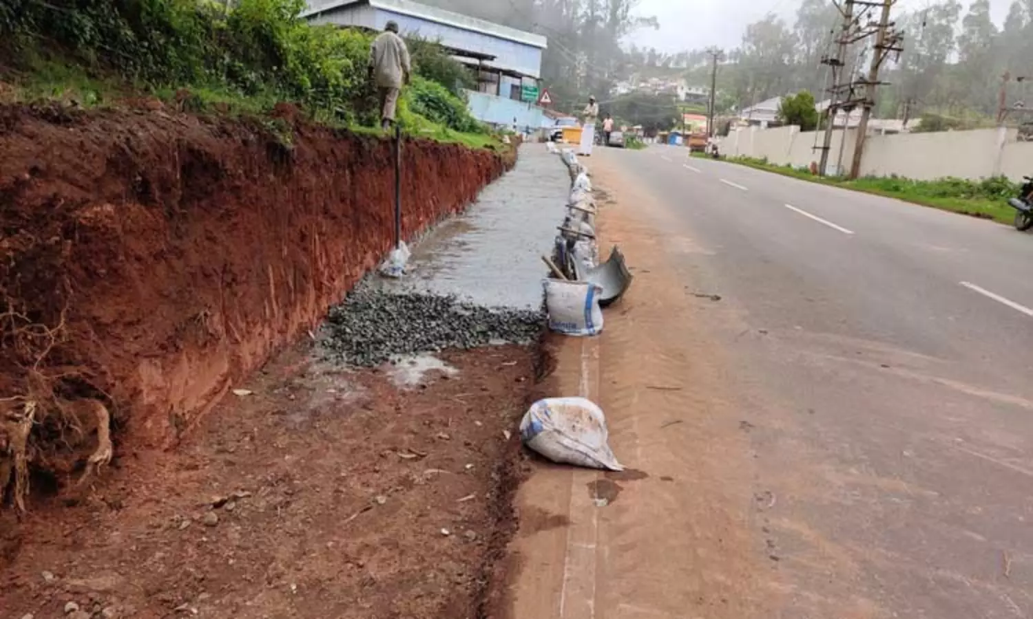 கோத்தகிரி நெடுஞ்சாலை துறை சார்பில், முன்னெச்சரிக்கை நடவடிக்கையாக மண் சரிவு ஏற்படுவதை தடுக்க தடுப்புச்சுவர் கட்டுவது, மழைநீர் கால்வாய் அடைப்புகளை சுத்தம் செய்வது, குறுகிய வளைவுகளை விரிவாக்கம் செய்வது, மழைநீர் கால்வாய்கள் கட்டுவது, சாலைகளை அகலப்படுத்துவது உள்ளிட்ட பணிகள் நடைபெற்று வருகின்றன. அதன் ஒரு பகுதியாக ரூ.50 லட்சம் செலவில் கோத்தகிரியில் இருந்து குன்னூர் செல்லும் சாலையில் காம்பாய் கடை முதல் கட்டபெட்டு வரை குறுகிய சாலைகளை அகலப்படுத்தும் பணி நடைபெற்று வருகிறது. சாலையோரம் பொக்லைன் எந்திரம் மூலம் குழி தோண்டப்படுகிறது. பின்னர் மழைநீர் தேங்காமல் வழிந்தோடும் வகையில் கான்கிரீட் தளம் அமைக்கும் பணி மும்முரமாக நடைபெற்று வருகிறது. மேலும் மண் திட்டுகள் இடிந்து, மண் சரிவு ஏற்படாமல் தடுக்க தடுப்புச்சுவர்கள் கட்டும் பணிகளும் நடைபெற்று வருகிறது. கோத்தகிரி நெடுஞ்சாலை உதவி கோட்ட பொறியாளர் சாமியப்பன், உதவி பொறியாளர் ரமேஷ் ஆகியோர் மேற்பார்வையில் இந்த பணிகள் மேற்கொள்ளப்பட்டு வருகிறது.
