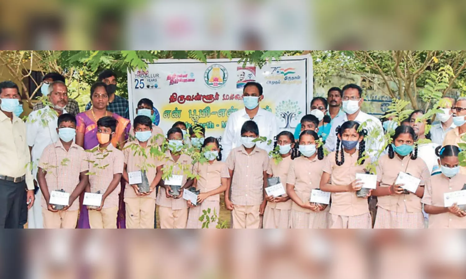 திருவள்ளூரை அடுத்த கடம்பத்தூர் ஊராட்சி ஒன்றிய தொடக்கப்பள்ளி வளாகத்தில் 'என் பூமி, என் மரம்' என்ற திட்டத்தின் கீழ் மரக்கன்றுகள் நடும் நிகழ்ச்சி நடைபெற்றது. இந்த நிகழ்ச்சிக்கு திருவள்ளூர் மாவட்ட கலெக்டர் டாக்டர் ஆல்பி ஜான் வர்கீஸ் தலைமை தாங்கி, மரக்கன்றுகளை நட்டு வைத்து மரக்கன்றுகளை பராமரிப்பதற்கான அட்டைகளையும் வழங்கினார்.