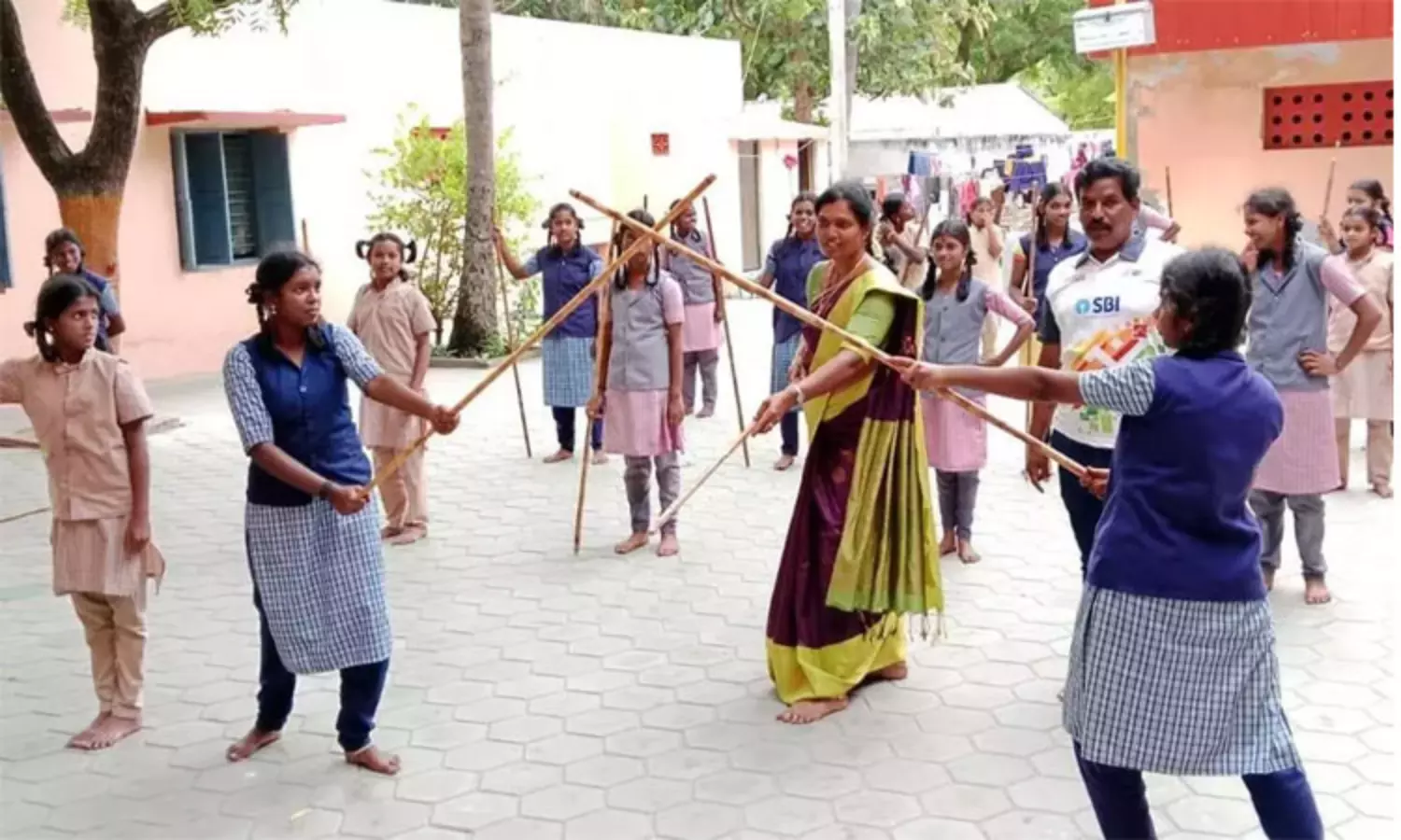 பகத்சிங் சிலம்பம் களரி மார்சியல் ஆர்ட்ஸ் அறக்கட்டளை சார்பில் மாணவிகளுக்கு தன்னம்பிக்கை ஏற்படுத்தும் வகையில் கடந்த 5 ஆண்டுகளாக இலவச சிலம்ப பயிற்சி அளிக்கப்பட்டு வருகிறது. இதில் விடுதியில் தங்கி படிக்கும் மாணவிகள் ஆர்வத்துடன் கலந்து கொண்டு பயிற்சி பெற்று வருகின்றனர்.
