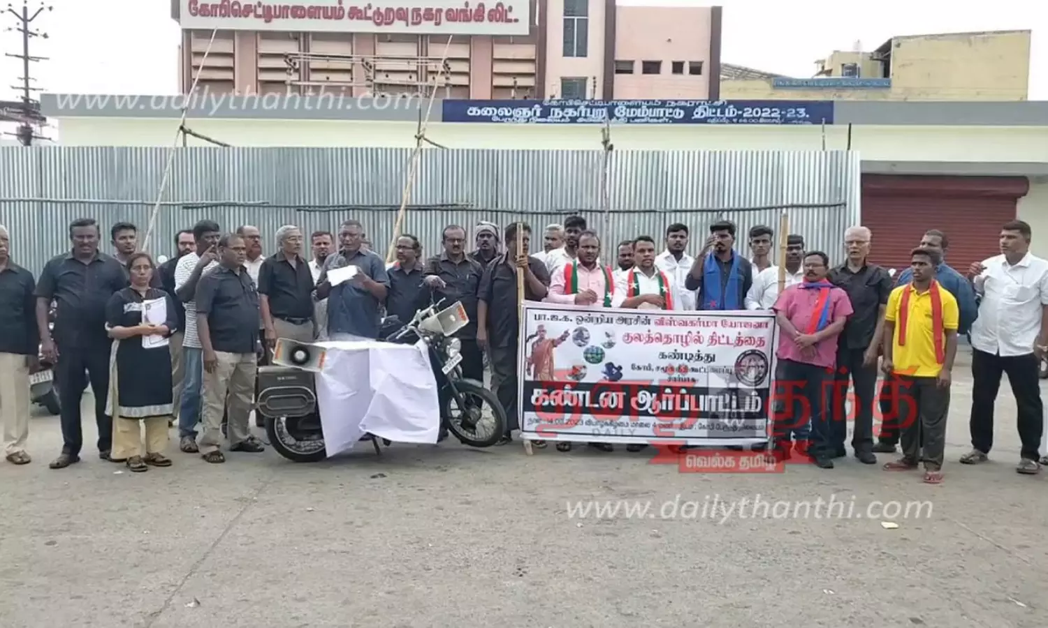 சனாதன தர்மத்தை ஒழிக்க வேண்டும் உள்ளிட்ட கோரிக்கைகளை வலியுறுத்தி சமூக நீதி கூட்டமைப்பு சார்பில் கோபி பஸ் நிலையத்தில் ஆர்ப்பாட்டம் நடைபெற்றது. ஆர்ப்பாட்டத்துக்கு திராவிடர் கழக மாவட்ட தலைவர் சிவலிங்கம் தலைமை தாங்கினார். தந்தை பெரியார் திராவிடர் கழக மாவட்ட தலைவர் குணசேகரன், புரட்சிகர இளைஞர் முன்னணி கோபி நகர பொறுப்பாளர் ரமேஷ், மனிதநேய மக்கள் கட்சி கோபி நகர தலைவர் ஆடிட்டர் சம்சுதீன் உள்பட பலர் கலந்து கொண்டனர்.