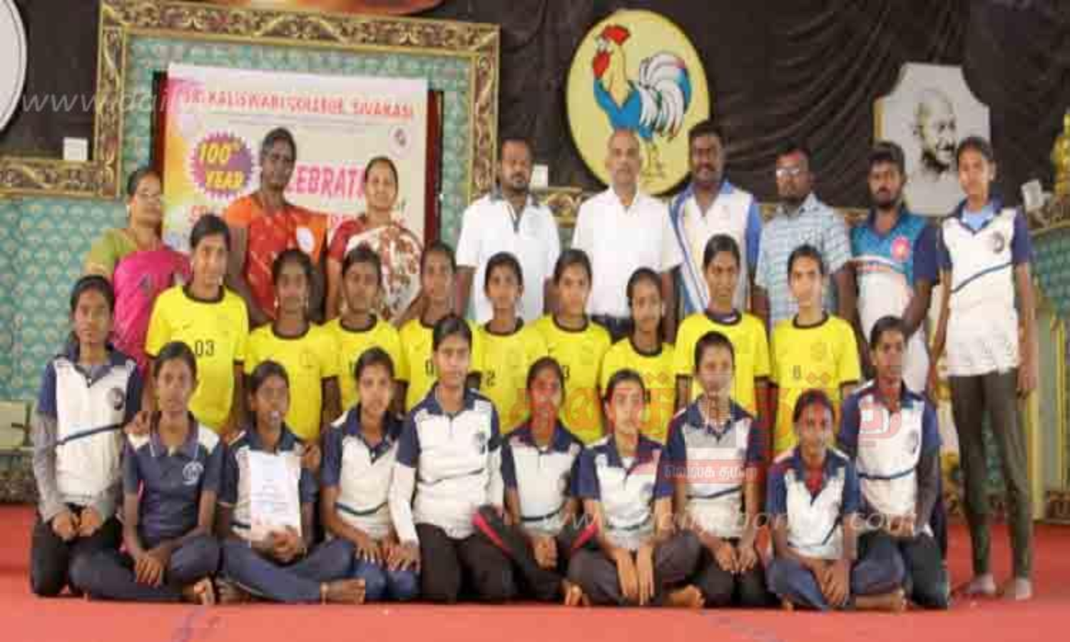 சிவகாசி ஸ்ரீகாளீஸ்வரி நிறுவனத்தின் நூற்றாண்டு விழாவினையொட்டி ஸ்ரீகாளீஸ்வரி கல்லூரியின் உடற்கல்விதுறை சார்பில் தென் மாவட்டங்களை சேர்ந்த 19 வயதுக்கு உட்பட்ட மாணவ, மாணவிகளுக்கு கைப்பந்து, கூடைப்பந்து, கபடி, கோ-கோ போட்டிகள் நடைபெற்றன.