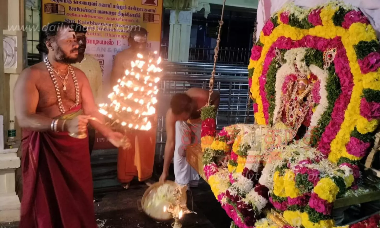 தர்மபுரி மாவட்டம் அதியமான்கோட்டை தட்சணகாசி காலபைரவர் கோவிலில் வளர்பிறை அஷ்டமி சிறப்பு பூஜை நடைபெற்றது. இதையொட்டி மூலவர் மற்றும் உற்சவருக்கு சிறப்பு அபிஷேக ஆராதனை மற்றும் வழிபாடு நடந்தது. தொடர்ந்து யாகசாலை பூஜைகள் மற்றும் லட்சார்ச்சனை வழிபாடு நடைபெற்றது. பின்னர் உபகார பூஜைகளும், மூலவருக்கு சிறப்பு அலங்கார சேவையும் நடந்தது. தொடர்ந்து கோவில் வளாகத்தில் வளர்பிறை அஷ்டமி ஊஞ்சல் சேவை நடந்தது. இதில் சாமி சிறப்பு அலங்காரத்தில் பக்தர்களுக்கு அருள் பாலித்தார். தொடர்ந்து சாமிக்கு மகா தீபாராதனை நடைபெற்றது. இதில் ஏராளமான பக்தர்கள் கலந்து கொண்டு சாமி தரிசனம் செய்தனர். இந்த வழிபாட்டையொட்டி பக்தர்களுக்கு சிறப்பு பிரசாதம் வழங்கப்பட்டது. இதற்கான ஏற்பாடுகளை கோவில் செயல் அலுவலர் ஜீவானந்தம், கோவில் அர்ச்சகர் கிருபாகரன் குருக்கள் மற்றும் விழா குழுவினர் செய்து இருந்தனர்.