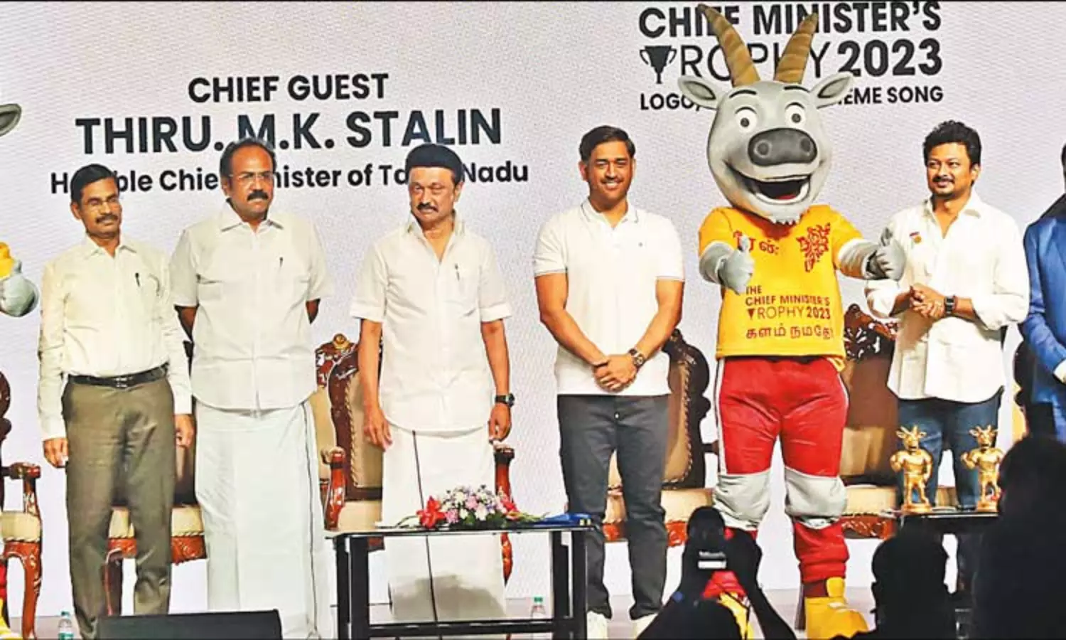தமிழக முதல்-அமைச்சர் மு.க.ஸ்டாலின் பங்கேற்று புதிதாக அமைக்கப்பட்டுள்ள தமிழ்நாடு சாம்பியன்ஸ் அறக்கட்டளையை தொடங்கி வைத்து, முதல்-அமைச்சர் கோப்பைப் போட்டிகள் 2023-க்கான 'வீரன்' சின்னம், கருப்பொருள் பாடல் மற்றும் டி-ஷர்ட் ஆகியவற்றை வெளியிட்டார். மேலும், முதல்-அமைச்சர் கோப்பைப் போட்டிக்கான இலச்சினையை அமைச்சர் உதயநிதி ஸ்டாலினும், தமிழ்நாடு சாம்பியன்ஸ் அறக்கட்டளையின் இலச்சினை மற்றும் வலைதளத்தை இந்திய கிரிக்கெட் அணியின் முன்னாள் கேப்டனும், சென்னை சூப்பர் கிங்ஸ் அணியின் இன்னாள் கேப்டனுமான மகேந்திர சிங் டோனியும் வெளியிட்டனர்.