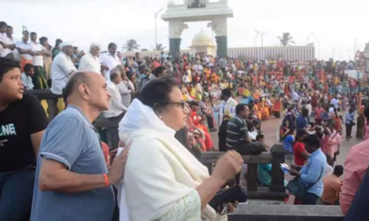 முன்னதாக அதிகாலையில் மத்திய இணை மந்திரி பகவத் கிஷன்ராவ் கராத் தனது மனைவியுடன் கன்னியாகுமரி பகவதி அம்மன் கோவிலுக்கு சென்று சாமி தரிசனம் செய்தார்.