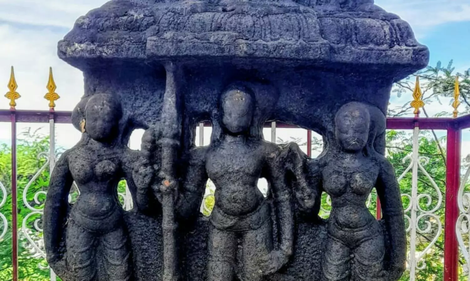 வீரன் வலதுபுறத்தில் பெண் சிற்பம் அணிகலன் அணிந்து அலங்காரத்துடன் சரிந்த கொண்டையுடன் வடிவமைக்கப் பட்டு உள்ளது. 2 பெண் சிற்பமும் ஆடை அலங்காரத்துடன் கொண்டை சரிந்து காணப்படுகிறது. இந்த சிற்பத்தை பார்க்கும் போது வளரி வீரன் இறந்த பிறகு 2 பேரும் உடன் கட்டை ஏறியதற்கு சான்றாக அறியமுடிகிறது.