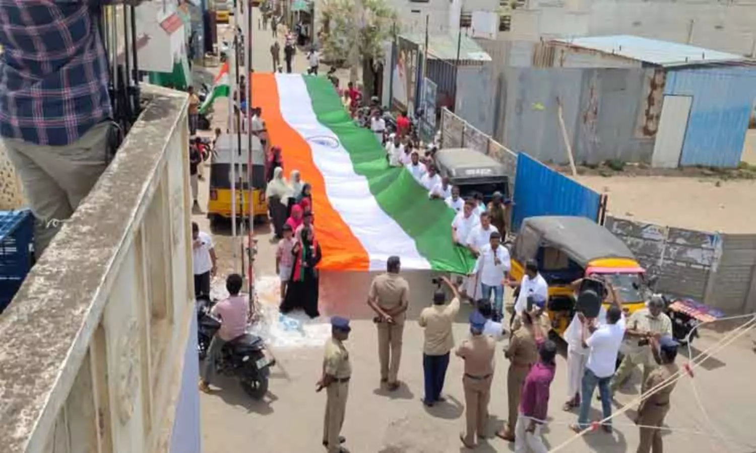 எஸ்.டி.பி.ஐ. கட்சி சார்பில் 75 அடி நீள தேசிய கொடியுடன் அணிவகுப்பு