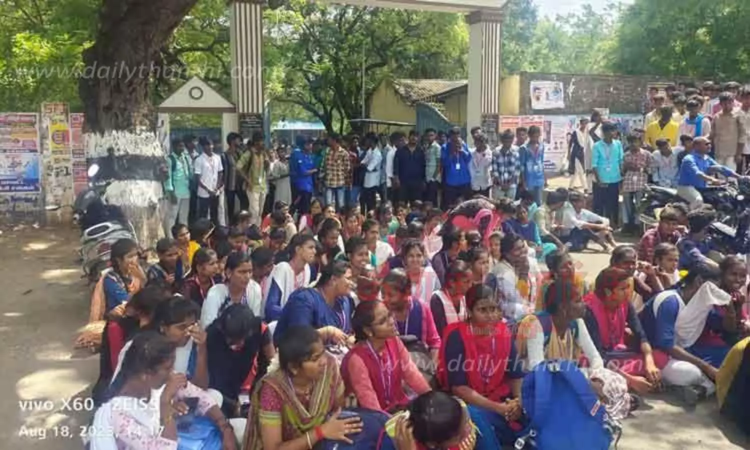 திருவண்ணாமலை அரசு கலைக்கல்லூரியில் வகுப்பை புறக்கணித்து மாணவர்கள் போராட்டத்தில் ஈடுபட்டனர்.;