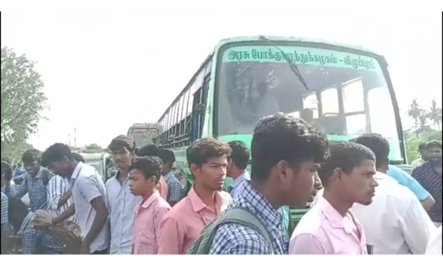 சோழபாண்டியபுரத்தில் இருந்து செங்கனாங்கொல்லை வழியாக திருக்கோவிலூர் நோக்கி அரசு பஸ் ஒன்று நேற்று காலை புறப்பட்டு சென்றது. பள்ளி நேரம் என்பதால் அந்த பஸ்சில் பயணிகள் கூட்டம் அதிகமாக இருந்தது. இந்த நிலையில் அந்த பஸ் செங்கனாங்கொல்லை கிராமத்துக்கு வந்தது. அப்போது பஸ்சில் ஏற்கனவே கூட்டம் அதிகமாக இருந்ததால் செங்கனாங்கொல்லையில் பஸ்சுக்காக காத்திருந்த பள்ளி, கல்லூரி மாணவர்கள் அதில் ஏறமுடியாத சூழ்நிலை ஏற்பட்டது.